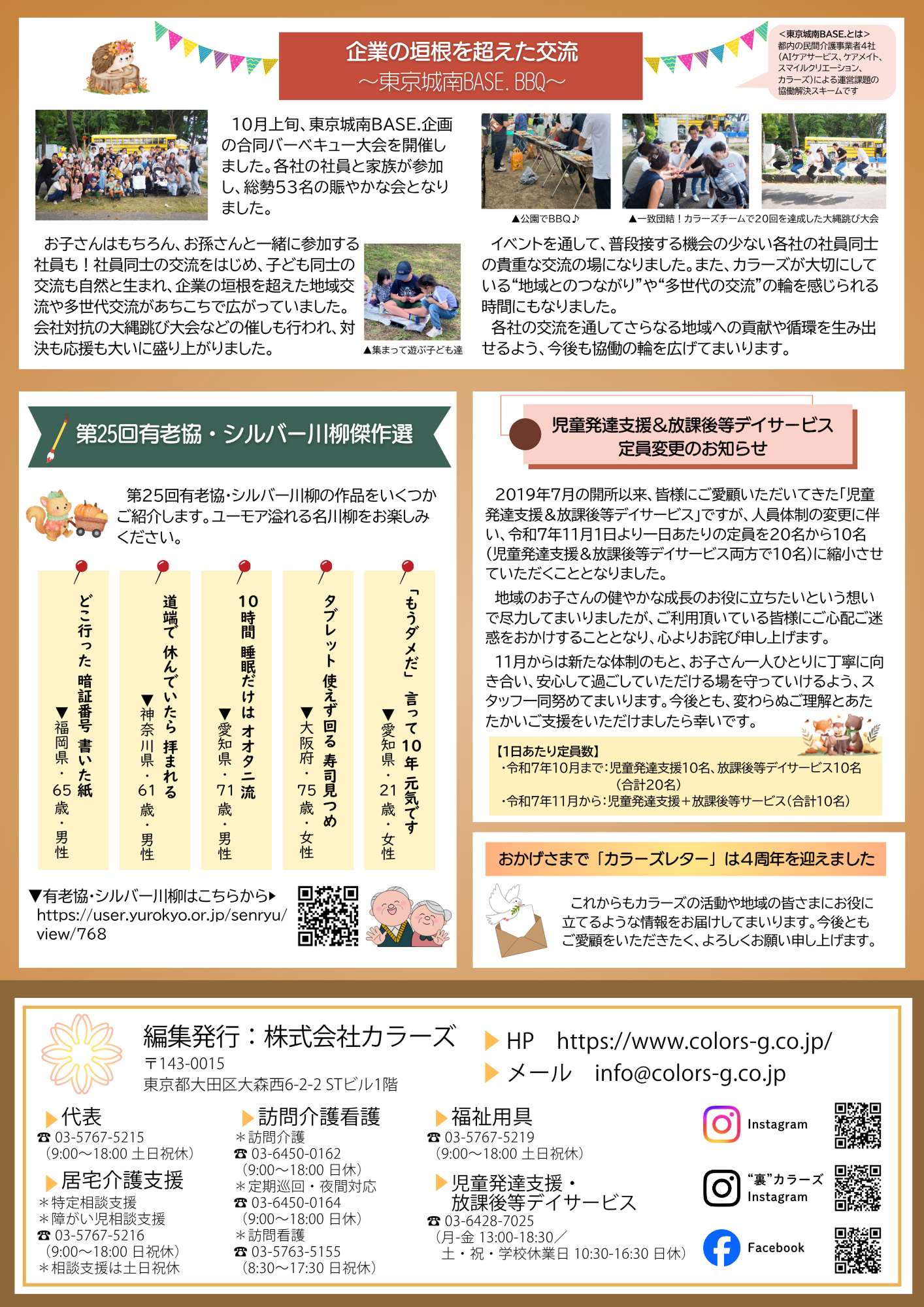 地域の皆さまによりカラーズを知っていただき、暮らしに関する話題をお届けするために、カラーズでは毎月「カラーズレター」を発刊しております。ぜひご覧ください。
