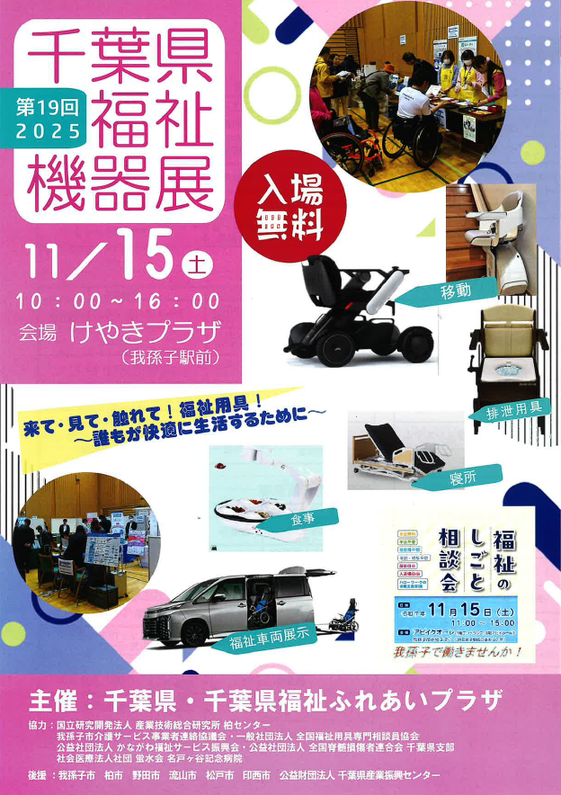11月15日に千葉県福祉ふれあいプラザで開催される「千葉県福祉機器展」にて、車いすCOLORS®が出展いたします。