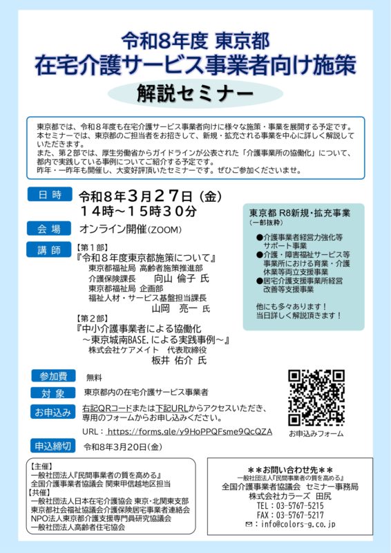 3/27(金)開催|東京都の在宅介護事業者向け施策 解説セミナー(2026年3月)