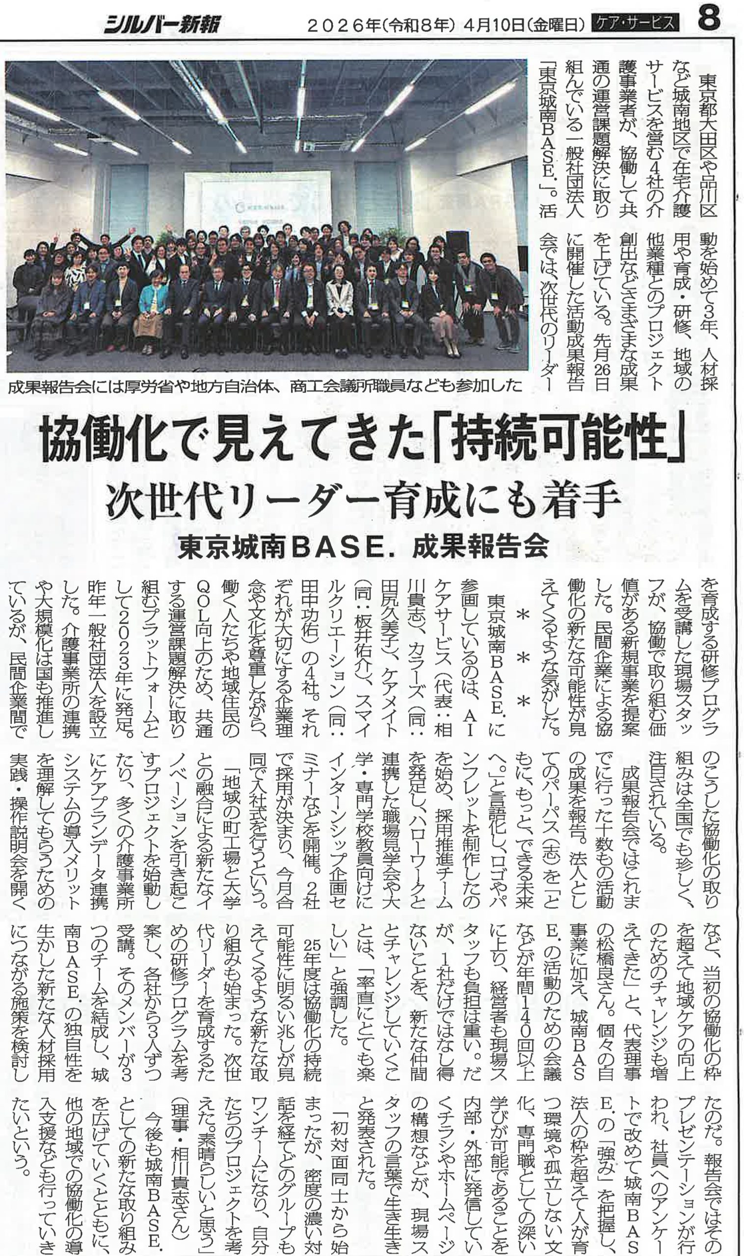 4月10日付のシルバー新報にて、一般社団法人「東京城南BASE.」令和7年度の成果報告会の様子が掲載されました。